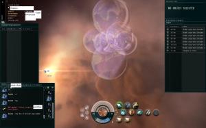 The probes weren’t ours, so you can imagine my surprise when I wasn’t trapped in a bubble on my way to the PoS; and the greater surprise I had when the pilot convoed me to say hi and not “Grrr, Grrr, you win this time, but we will have your very expensive ship for our killboards. Arrrrgh” or whatever pirates say. Apparently, through some act forgotten to me and him, our respective corporations had set each other to blue, which was strange, as his corporation was a nullsec habiter and we were a highsec mining corp. He revealed himself as an old WH miner that left the WH for nullsec come Dominion, with good reason, so he said. He invited me for a look around his nullsec, as his alliance and all nearby alliances were NBDS. Immediately suspicious, I took my sister gear off my covops, slapped on a normal scanner and flew after him. After flying past an impressive warp bubble on a gate: