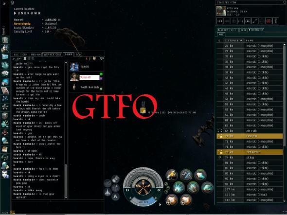 Wait, sorry, that’s my Tyrannis plan. Anyway, an alternate solution of making a deep, deep safespot and having the rorqual compress ore on site in safety was one of our “really good ideas”, which, unfortunately, will soon be impossible since to the disabling of said exploit, which is at the top of CCP’s “fix now” list, instead of some other things that I remember being upset about but apparently I’m not passionate enough about to remember. The one legitimate reason for nerfing deep safes I’ve heard so far are some people in null are putting their Dominion shoot-me-to-take-system thingys way out there making warping to them difficult. Oh, and it’s an exploit.