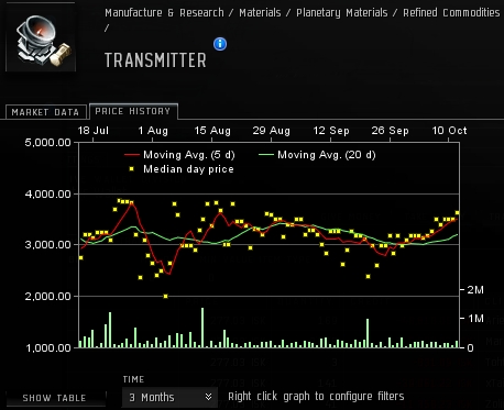 Over the past few months, I have become involved in the trading aspect of Eve. The change of NPC seeded items into player made ones via the PI method has fascinated me. The infinite supply has been removed and now the market is open.