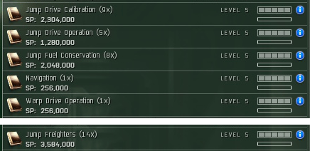 A few month ago, I set out to reduce the Isotope cost as much as possible. One way on the round-trip into our nullsec staging system was consuming 21.2 k Isotopes with level 4 skills. By polishing them off to V, the consumption is now 14.7 k.