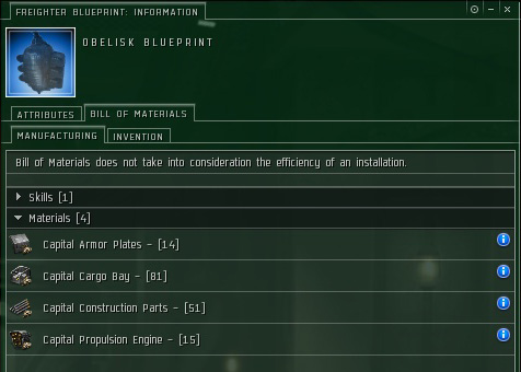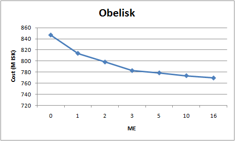 Posted: 2011-07-23 Filed under: industry, ships | Tags: maelstrom, obelisk Leave a commentWhile working on some profit numbers for various items, I found that ME levels affect the build costs a little differently for Capital ships than other items such as Battleships or Modules.