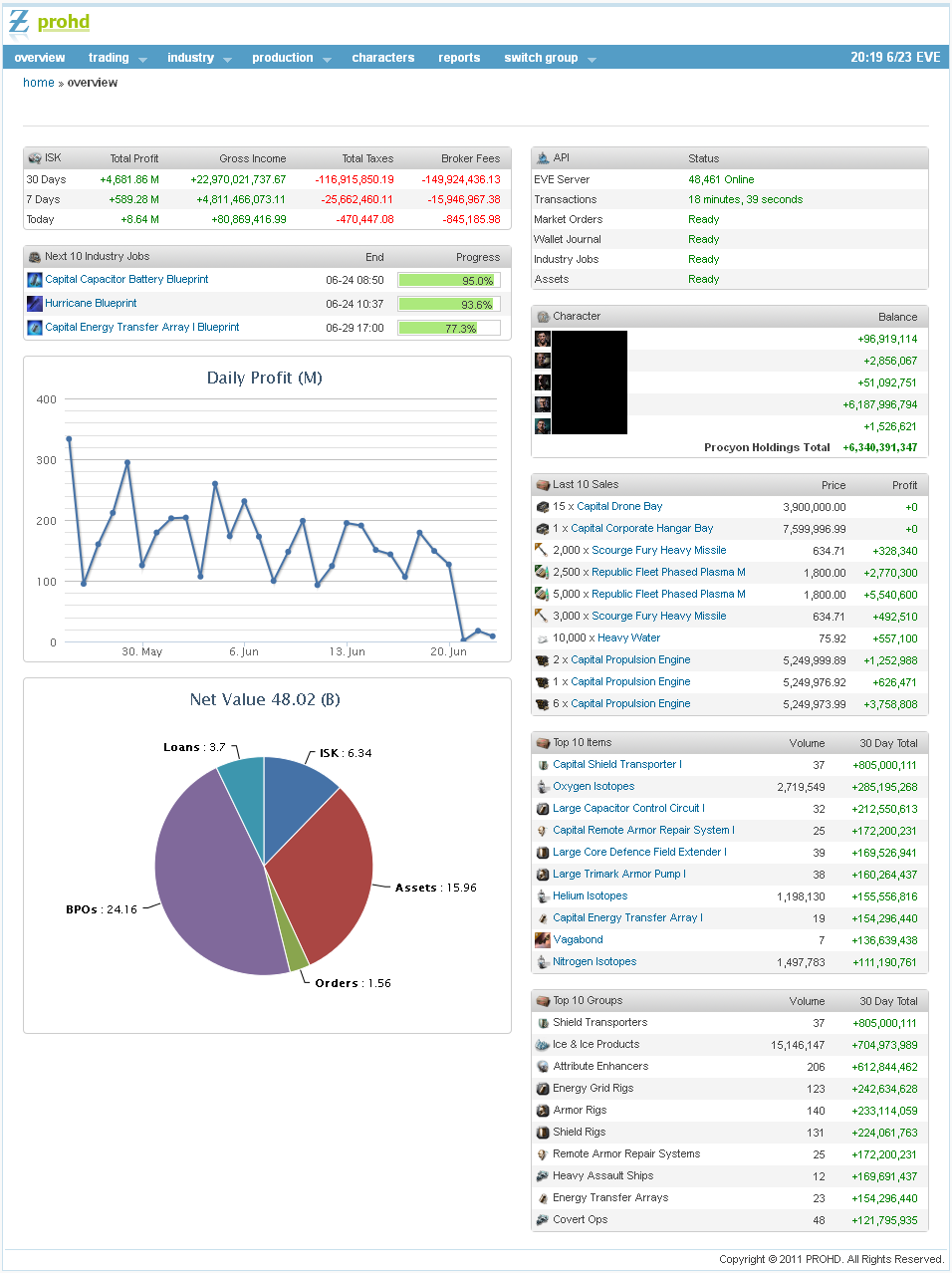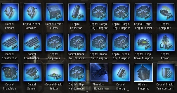 Posted: 2011-07-20 Filed under: industry, ships 4 CommentsOver the past three months, I bought up some Capital BPOs because I wanted to cut the costs of producing my own Thanatos and Obelisk ships.