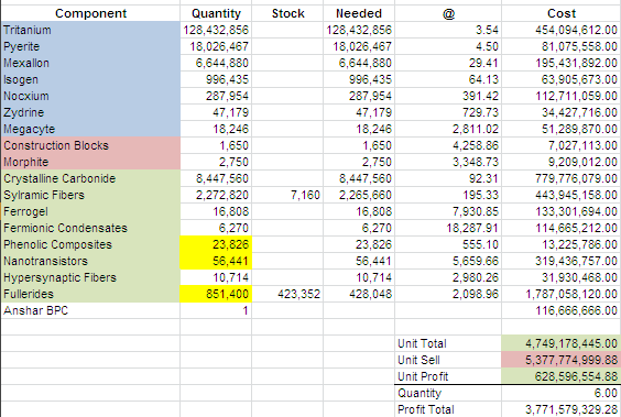 Now before you rush out to get into Jump Freighter production, consider the large amount of time and capital involved.