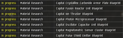 The saturation of slots in Empire is true for Material Research and Copy job activities while Time Efficiency and Invention slots are generally easy to find.