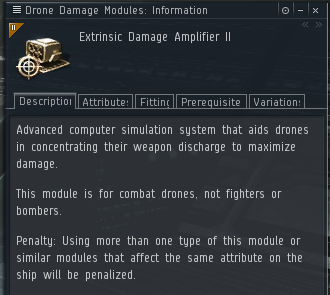 I’m looking into upping this module in power. I mostly have the CPU and damage to work with, because of the way the technical backend is, I can’t affect the RoF of drones. But we should be able to adjust the rest of the stats to make up for that somewhat. The goal is definitely to make this module be on par with the other damage amplifier mods.