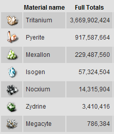 Posted: 2012-08-29 Filed under: industry, market, nullsec, pos | Tags: cloud ring, deklein, freighter, isogen, jita, jump freighter, maelstrom, megacyte, mexallon, nocxium, pure blind, pyerite, tritanium, zydrine 6 Commentstl;dr Using mineral compression enables you to haul the minerals needed to built 344 battleships in one Jump Freighter.
