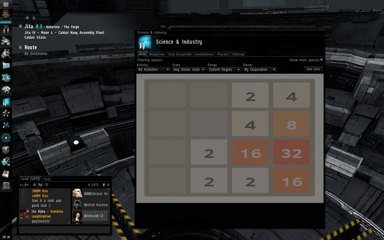 Posted: 2014-04-18 Filed under: industry, nullsec | Tags: amarr, G-TT5V, G8AD-C, highsec, jita, lowsec, nullsec, Otsela, VFK-IV 1 CommentOverview