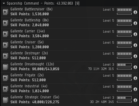 I’ve got a good base for Gallente so I just need to round out some Drone and support skills.