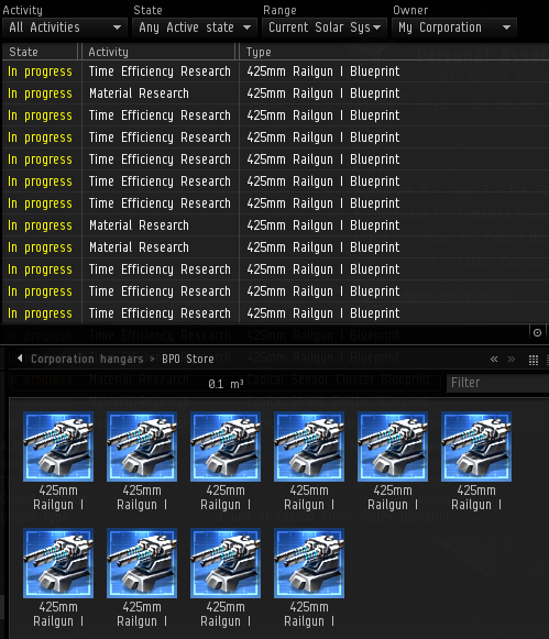 - A few 425mm Railgun I Blueprint or other popular compression BPO that is listed in the QEN. ME36, PE40 is a good start for the Railgun BPO.