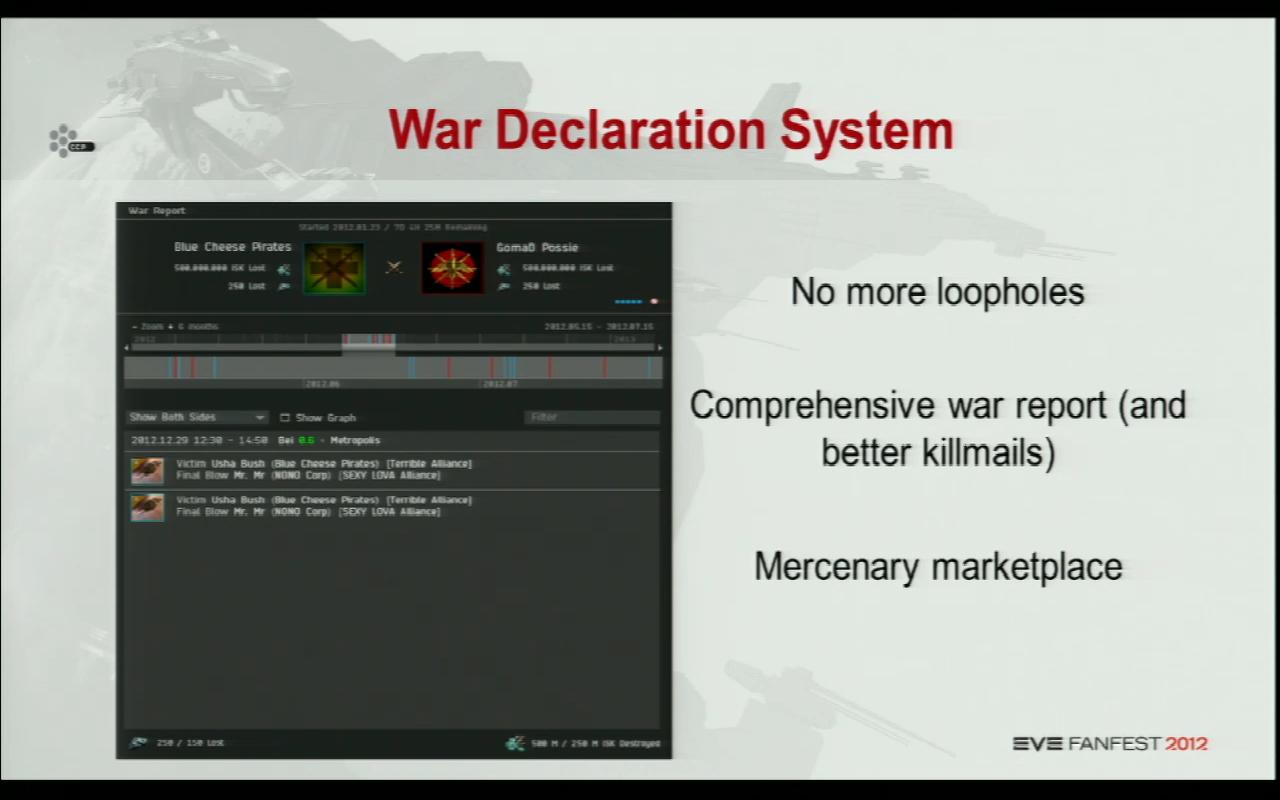 For a while, we’ve been talking about global killboards and all the awesome stuff that comes with it (leaderboards, weekly contests etc). Linking killmails in chat to other players means that you’ll effectively have access to that data, making our global killboard project slightly problematic. That, coupled with some security concerns means that we’ll have to withdraw linking killmails ingame.Just to make it clear, we’re not pulling this feature because we don’t want you linking killmails, we’re pulling it because we have concerns about the impact on our global killboard project and making this massive amount of data available in a more graceful manner in terms of security etc.
