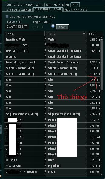If you ping your directional with active overview turned on, you’ll see whatever ships, etcetera are within 14 km of you. If you turn off “active overview settings”, then you get EVERYTHING within 14 AU of you, including moons, planets, and every single PoS module your tower has.