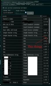 Posted: 2010-01-18 Filed under: eveonline | Tags: die, directional scanner, eve online, fight, hulk, mining, pvp 8 CommentsFor those of you who don’t know, in WH space local chat is delayed. This basically means that if someone is in system with you, you don’t know unless you tell a joke so good that they type “lol” in local out of habit, or they uncloak in a stealth bomber and launch a bomb at your unsuspecting self. Considering that, again, anyone and everyone can and will try to kill you, you need to have an alternate method to detecting other players before they sneak up on you and give you a prostate exam with an interdictor, hence your directional scanner.