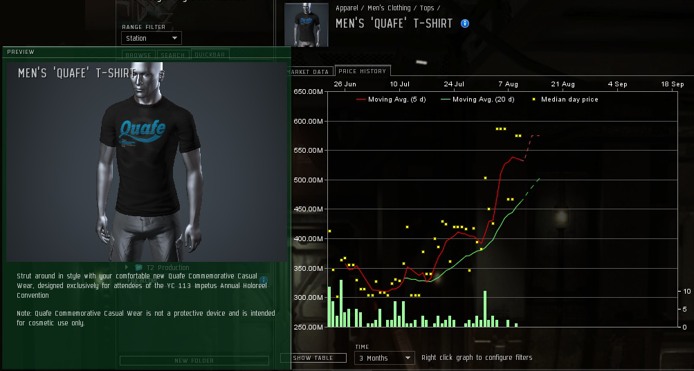 I am however, left wondinering what this means for the furture of Eve. Are we gradually going to accept the new role that these types of items have in the game? I feel that items like this T-shirt, and especially the free Aurum that was introduced to players via the reward system for uploading content to eveisreal.net, are doing nothing but bringing the Aurum concept into our lexicon.