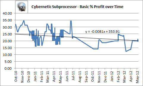 The slope of the trendline suggests that the profitability is every so slightly going down. I assumed that the decline would be much greater than shown by the trendline.