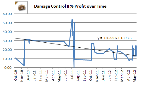 1. Here is the graph for 1,534 Damage Control II’s. It shows more downward profitability than the Noctis.